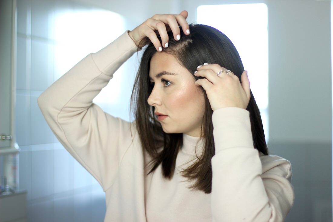 Die Anwendung ist zudem wirklich kinderleicht und morgens schnell in die Routine eingebaut. Ich benutze es immer nach dem Duschen, während ich mich fertig mache. Ich sprühe das Produkt aus ca. 30 Zentimetern Entfernung an den Haaransatz, insbesondere an die Stellen, die besonders fettig sind und die für den Tag wie frisch gewaschen aussehen sollen. Anschließend stecke ich die Haare mit einer Klemme zurück und lasse das Trockenshampoo „einwirken“. Währenddessen putze ich meine Zähne, creme mich ein und schminke mich. Nach dem Sprühen können überschüssige Reste, die sich einfach ausbürsten lassen. Den Rest bekommt man dann mit Einmassieren beseitigt. Dann style ich die Haare wie gewohnt – FERTIG! 🙂