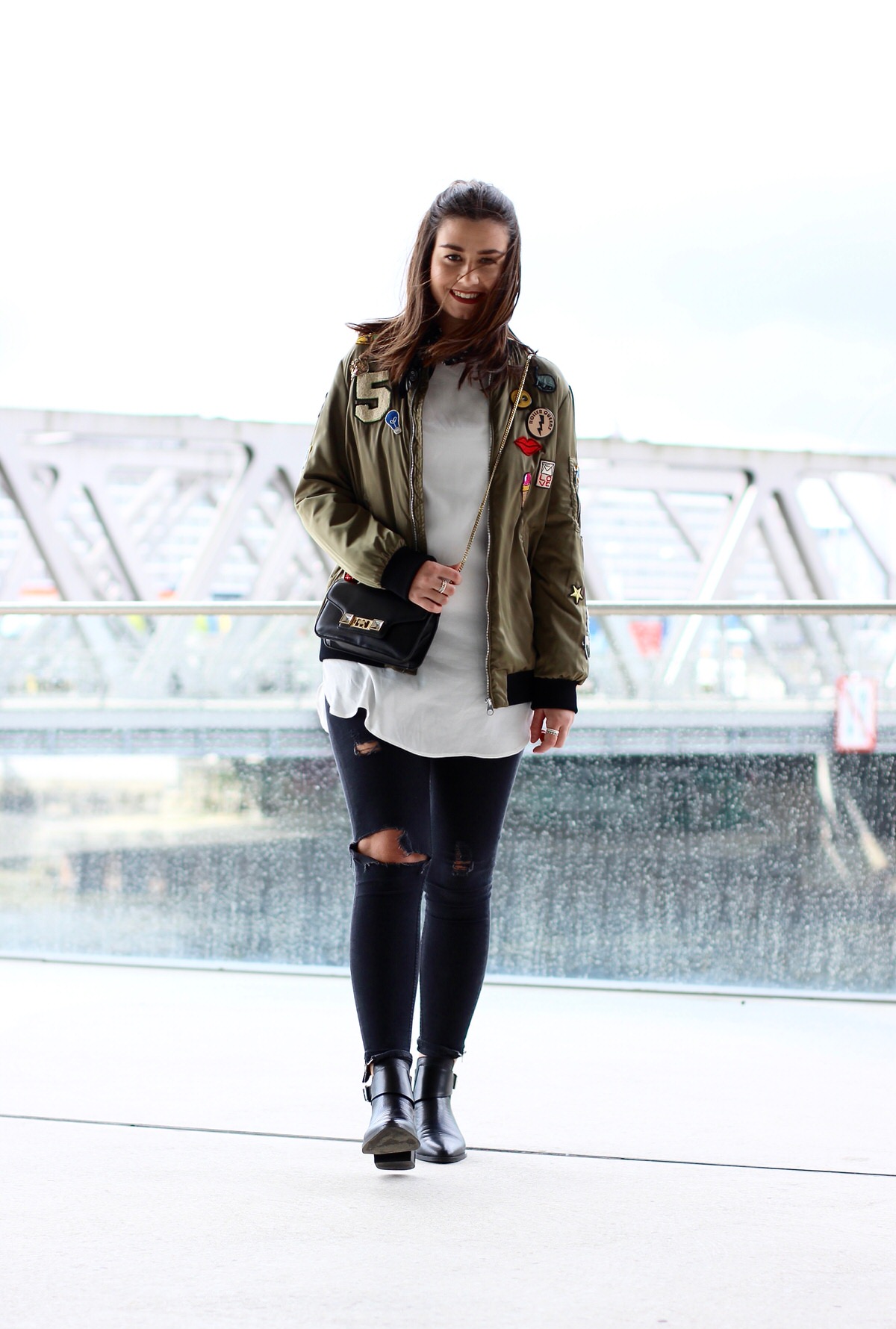 Ich liebe Patches/Aufnäher. Die Jacke ist echt cool und sieht super einzigartig aus! Tolle Kombination auch mit dem Langen Shirt und der Dunklen Hose!