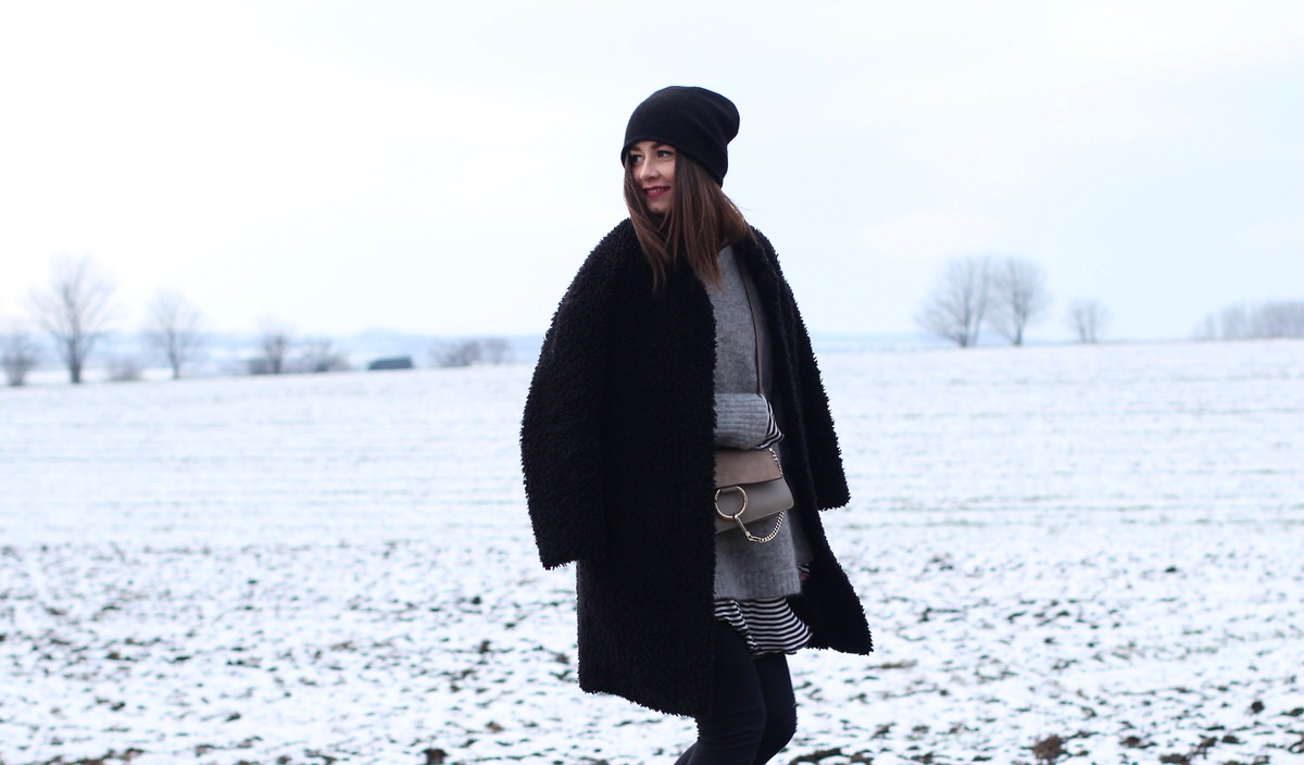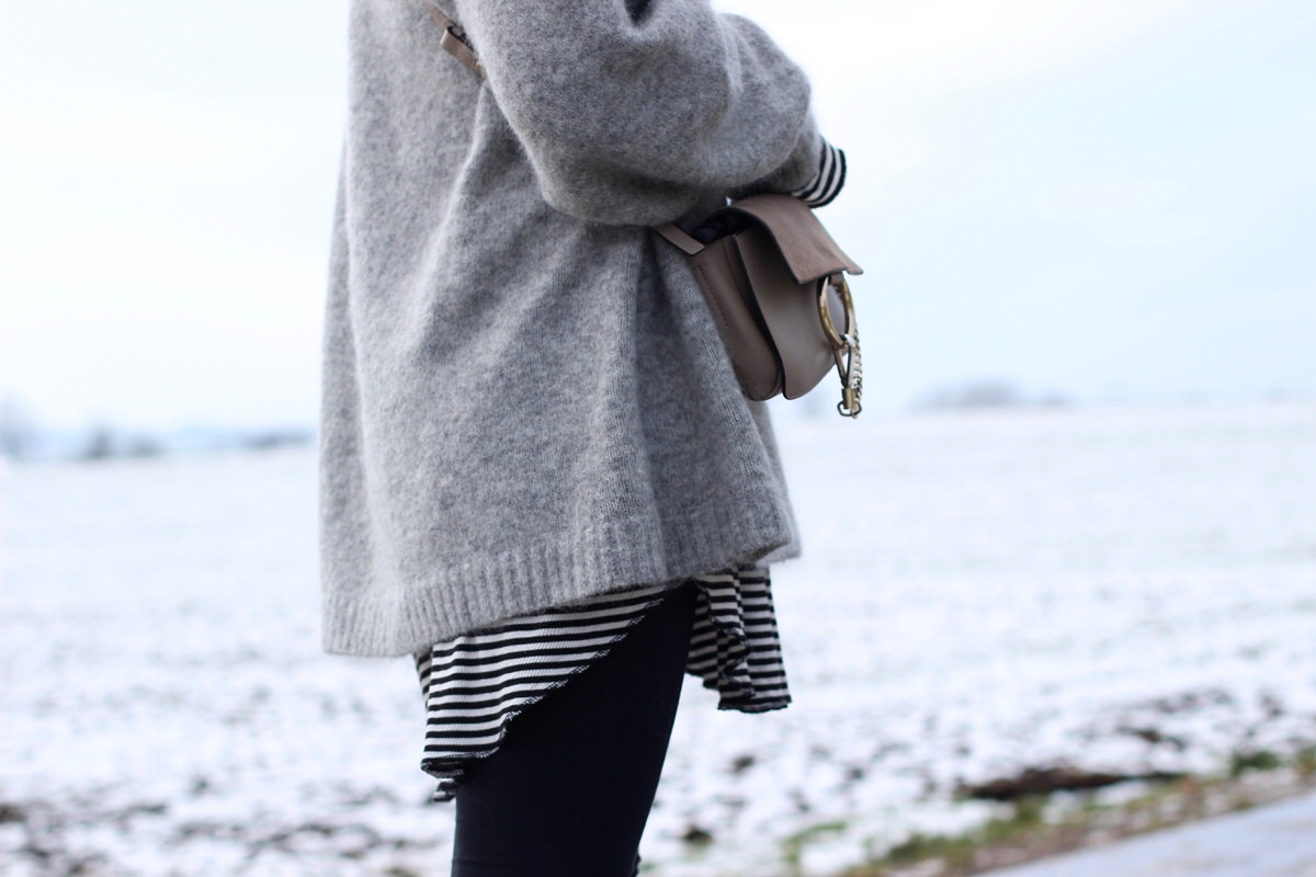Mein Outfit im heutigen Post zeigt wieder meine liebste Kombination im Moment – oversize Strick im Layering-Look. Für die kalten Temperaturen ist es genau das richtige. Und zudem ist es fürs reisen oder die Vorlesungen in der Uni unglaublich bequem. Ich frage mich aber im Moment ernsthaft, was ich dann im Frühling und Sommer tragen soll. Ich fühle mich so wohl in meinem Pullovern und möchte ungern darauf verzichten. Aber es wird mir wahrscheinlich etwas zu warm bei 20 Grad. Ihr könnt also genauso gespannt sein, wie ich es bin, was ich alternativ tragen werde. Was bei meinen Looks natürlich nicht fehlen darf: meine Chloé Faye. Zemlich schade, dass sie für die Uni zu klein ist. Ich würde sie ansonsten nämlich am liebsten jeden Tag nehmen. *lach*
