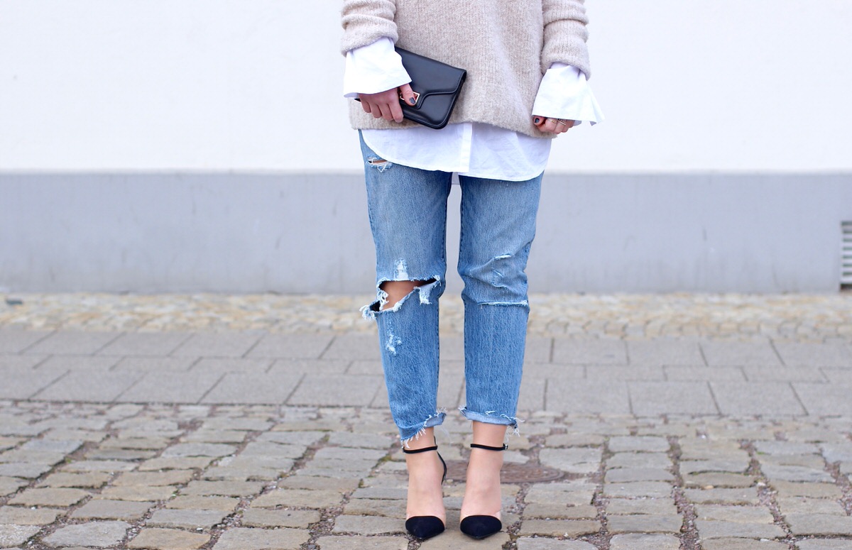 Ich habe jetzt endlich auch die Richtige für mich gefunden. Denn nicht jeder Schnitt ist für jeden Körpertyp gemacht. Ich habe mich bei meiner Levi’s für eine Jeans in Relaxed Fit entschieden. An meinen Skinny Jeans habe ich mir irgendwie satt gesehen, also musste es mal etwas anderes sein. Und eine weitere Überraschung, es ist zur Abwechslung mal keine schwarze Jeans. Ich werde ja richtig experimentierfreudig. *lach* Jedenfalls hat es mir meine neue Hose echt angetan. Und sie lässt sich super leicht kombinieren. Ob Sneaker, Heels oder Loafer – es passt einfach alles. Und die Kombination mit hohen Schuhen, wie diesem Post, mag ich besonders gern. Es ist wohl die Zusammenstellung aus elegant und lässig, die es mir angetan hat.