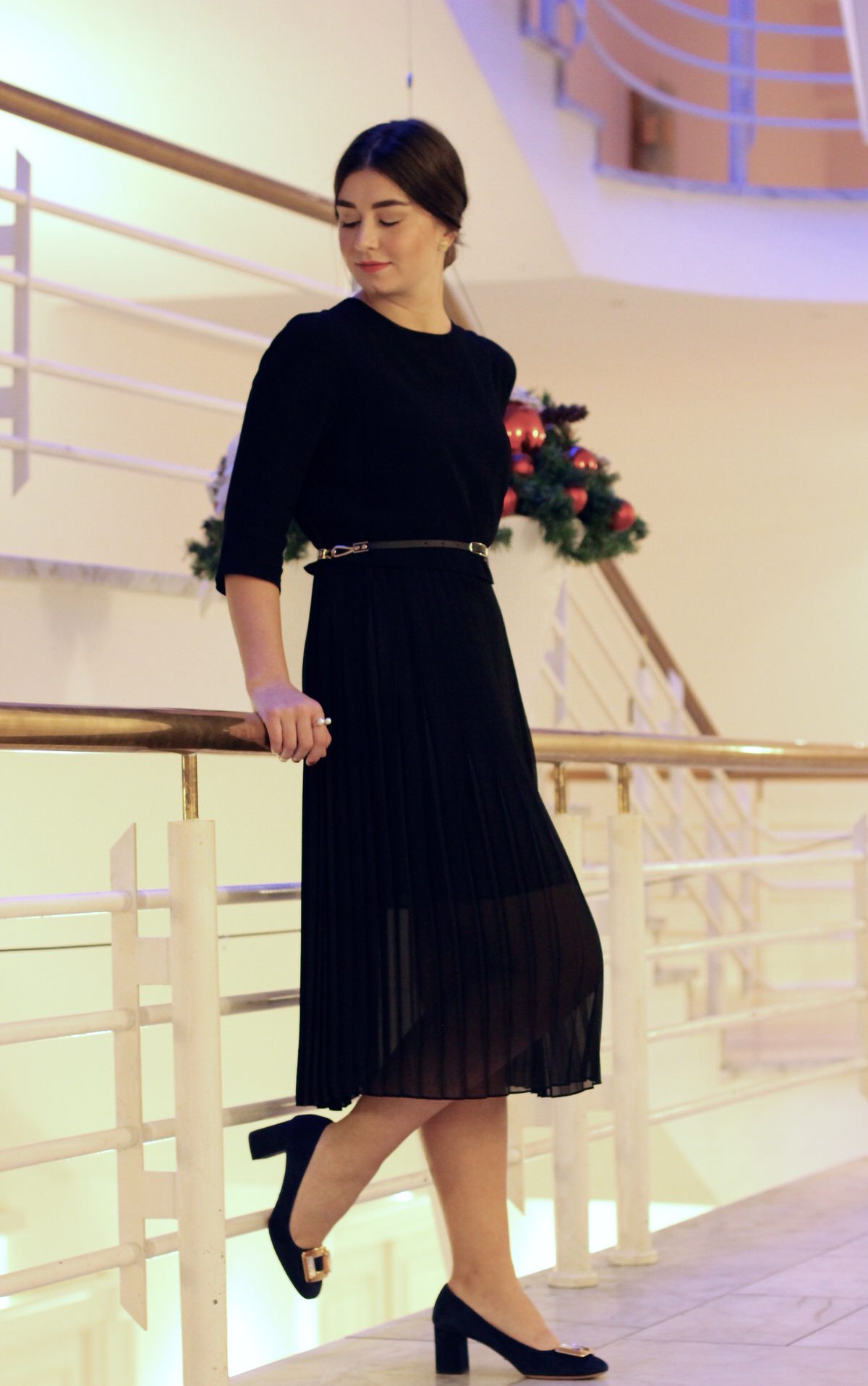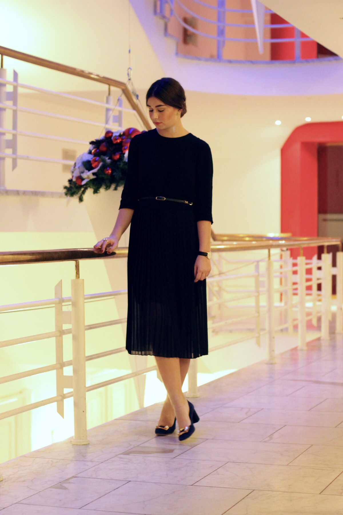 Hallo ihr Lieben. Als ich es vor zwei Monaten gekauft habe, hatte ich nur DIESEN besonderen Anlass im Hinterkopf. Es sollte in diesem Jahr mein Christmas Dress werden. Obwohl ich, wie der Großteil von euch sicher auch, den Heiligabend nur zu Hause im Kreise meiner Lieben verbringe, liegt mir mein Outfit für den Abend trotzdem immer sehr am Herzen. Ich überlege mir bereits lange im Voraus, was ich in diesem Jahr am Heiligabend tragen werde. In diesem Jahr bin ich mal wieder bei Zara fündig geworden. Ich habe mich in dieses Kleid so richtig verliebt. Es ist schlicht, aber trotzdem verspielt. Der Unterrock reicht nur bis zu den Knien und lässt dadurch das restliche Bein durch den schönen Stoff scheinen. Durch das „Oberteil“ und den Plisseerock sieht es aus, als würde das Kleid aus zwei Teilen bestehen. Aber die Raffinesse: es ist ein Teil, eben ein Kleid. Ihr glaubt nicht, wie sehr ich mich auf den Moment gefreut habe, es endlich auszuführen. Und ich bin mir sicher, dass ich es auch nach Weihnachten noch einige Mal tragen werde. Ich werde mich mit Sicherheit lange daran erfreuen. Es ist  besonders – es ist schick, elegant und zeitlos.