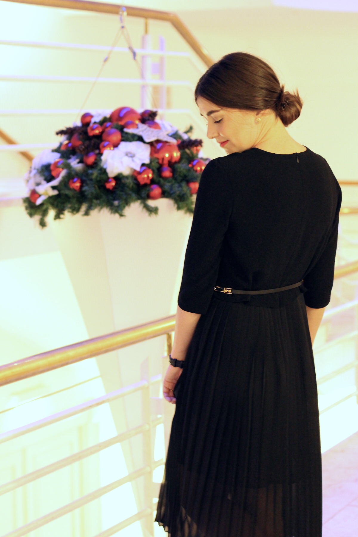 Hallo ihr Lieben. Als ich es vor zwei Monaten gekauft habe, hatte ich nur DIESEN besonderen Anlass im Hinterkopf. Es sollte in diesem Jahr mein Christmas Dress werden. Obwohl ich, wie der Großteil von euch sicher auch, den Heiligabend nur zu Hause im Kreise meiner Lieben verbringe, liegt mir mein Outfit für den Abend trotzdem immer sehr am Herzen. Ich überlege mir bereits lange im Voraus, was ich in diesem Jahr am Heiligabend tragen werde. In diesem Jahr bin ich mal wieder bei Zara fündig geworden. Ich habe mich in dieses Kleid so richtig verliebt. Es ist schlicht, aber trotzdem verspielt. Der Unterrock reicht nur bis zu den Knien und lässt dadurch das restliche Bein durch den schönen Stoff scheinen. Durch das „Oberteil“ und den Plisseerock sieht es aus, als würde das Kleid aus zwei Teilen bestehen. Aber die Raffinesse: es ist ein Teil, eben ein Kleid. Ihr glaubt nicht, wie sehr ich mich auf den Moment gefreut habe, es endlich auszuführen. Und ich bin mir sicher, dass ich es auch nach Weihnachten noch einige Mal tragen werde. Ich werde mich mit Sicherheit lange daran erfreuen. Es ist besonders – es ist schick, elegant und zeitlos.