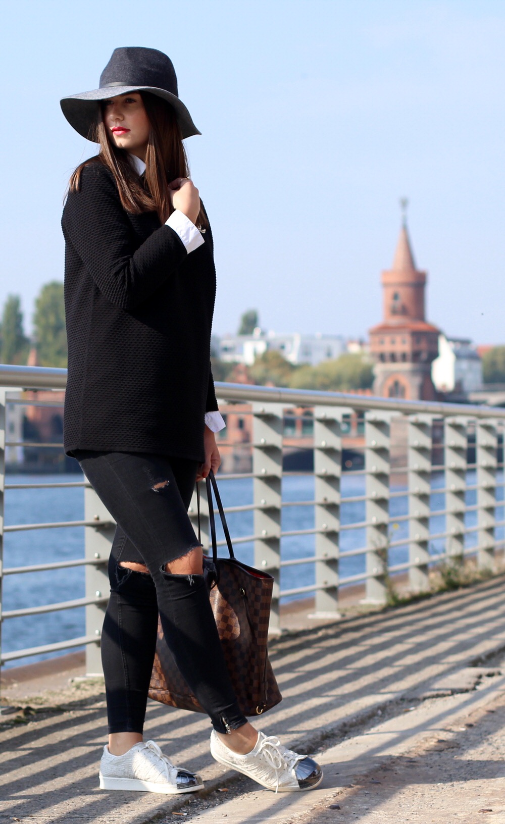 Aber es gibt natürlich auch einen kleinen Haken und ich weiß ganz sicher, dass es da nicht nur mir so geht. Mit einigen Freundinnen habe ich diese eine schwarze Jeans im Schrank, die bei jeder von uns beim Kauf noch schwarz war. Doch mittlerweile ist sie durch das viele Waschen und Tragen eine eher graue Jeans geworden. Unterschiedliche Schwarztöne passen einfach nicht wirklich gut zusammen, wenn wir von einem allblack-Outfit sprechen. Aber es ist eben die Lieblingsjeans, deshalb wird sie nicht einfach aussortiert und gegen eine neue eingetauscht, oder wie seht ihr das?